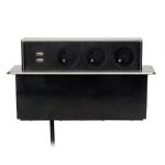 vstavané zásuvky pre pracovné dosky a stoly výsuvný blok, elegantne schovaný, vysunie sa len v prípade potreby a nezaberá zbytočne miesto zásuvky vedľa seba, vrchný kryt z brúseného hliníka 3x zásuvka 230V/10A 2x USB, 2400mm max. farba: strieborná, čierna rozmer montážneho otvoru v doske stola: max. 25,0 x 6,5cm výška vysunutého bloku nad...